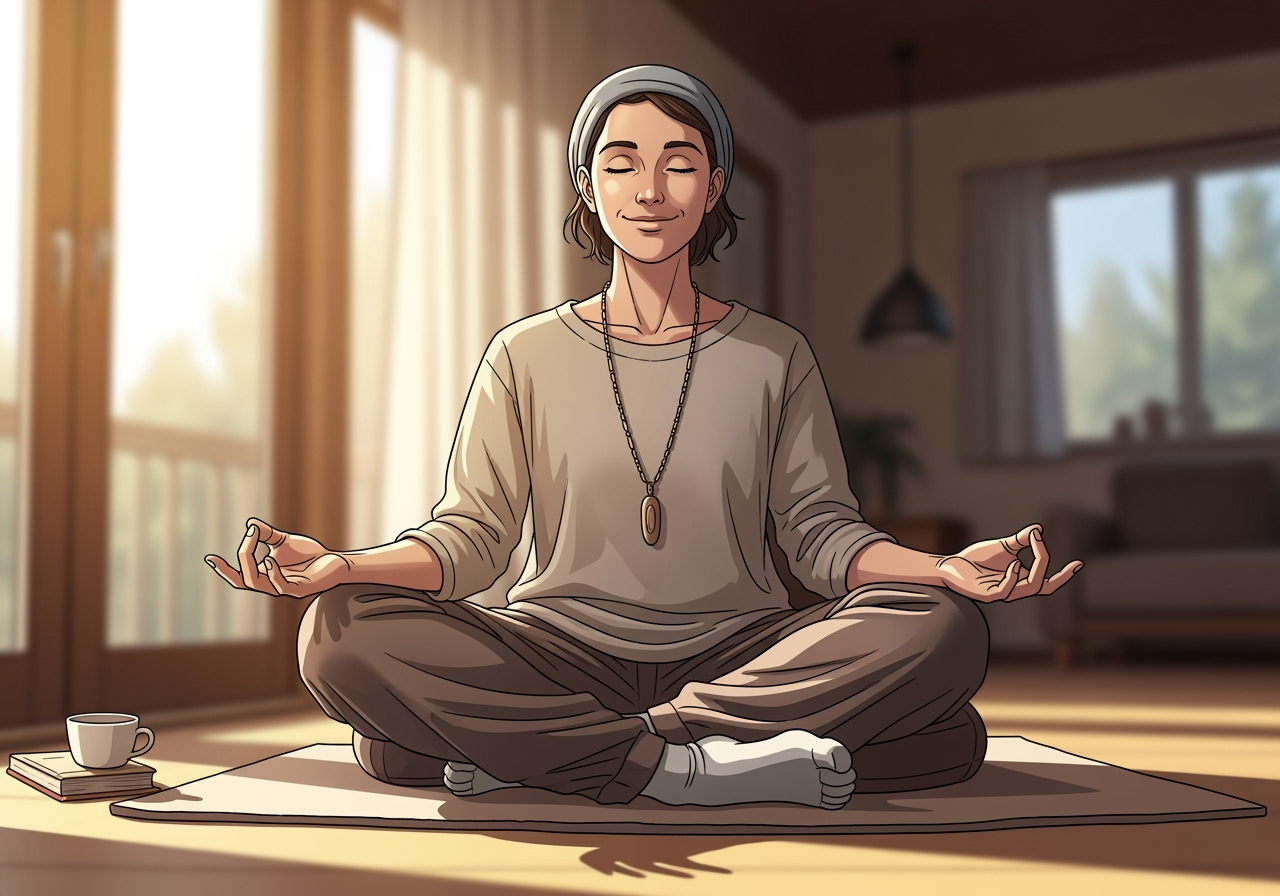 Take three slightly deeper breaths to signal the end of your practice. Gently open your eyes and take a moment to notice how you feel right now compared to when you started. There's no need to feel dramatically different; even small shifts matter.